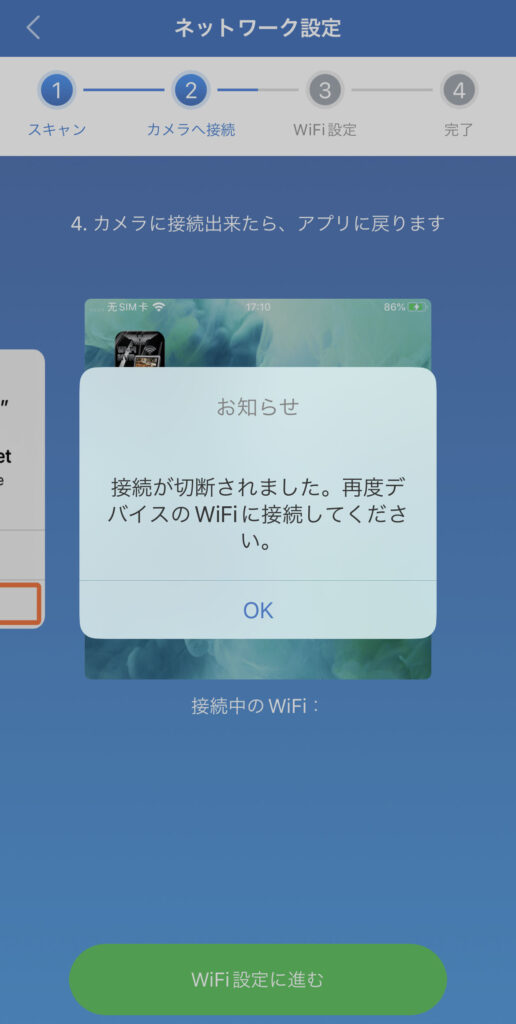 その状態のまま、WTW-EAGLEアプリを開いていただき設定が進められるかどうかをご確認ください。