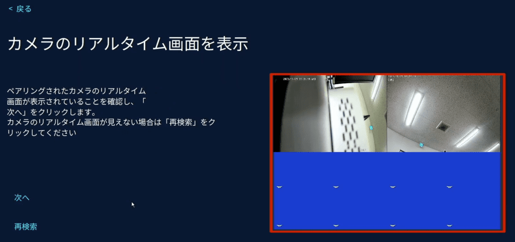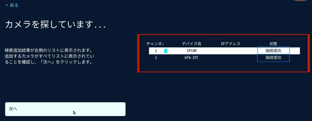 6.映像が正常に映っていることが確認できたら、再度「次へ」をクリックすることで登録が完了します。