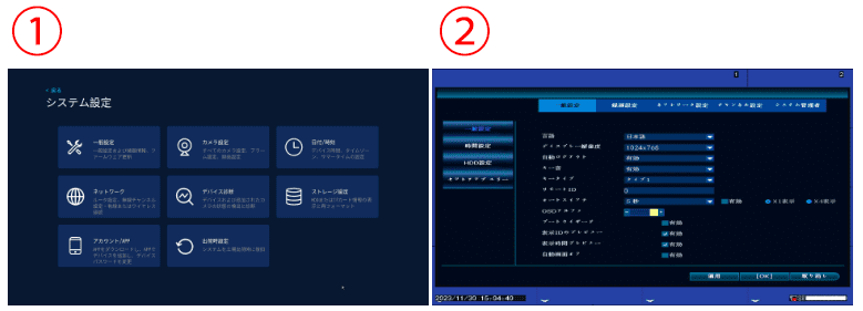 ①のメニューが表示されている録画機の場合