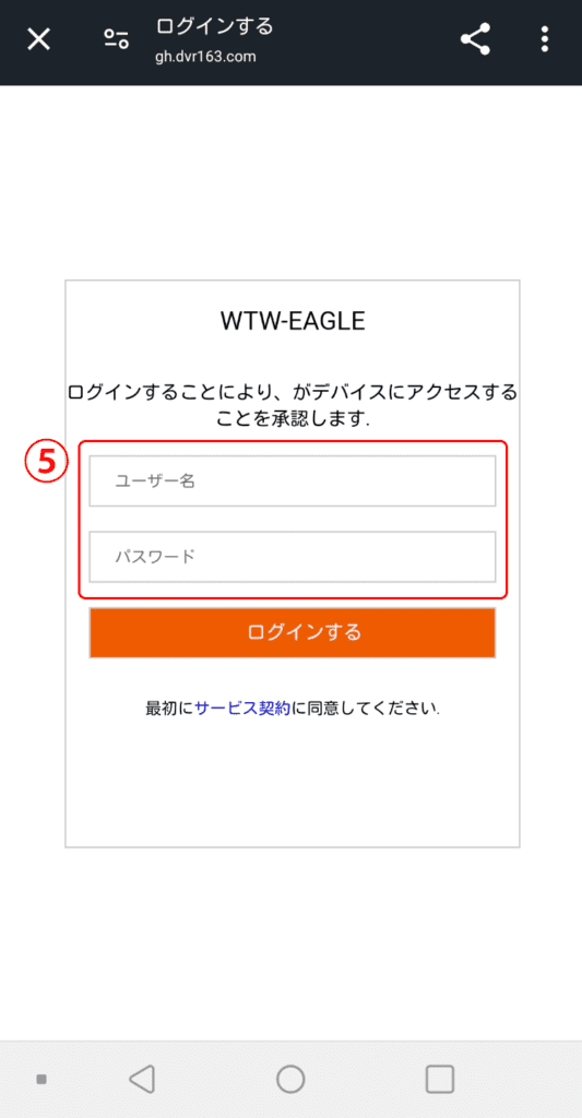 ⑤WTW-EAGLEアプリに登録しているログイン情報を入力して「ログインする」をタップします