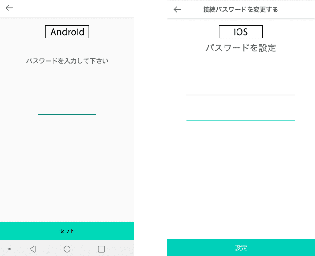 Android・・・パスワードを1回入力して「セット」をタップしてくださいiOS・・・同じパスワードを2回入力して「設定」をタップしてください設定できるパスワードは数字のみで桁数の制限はございません