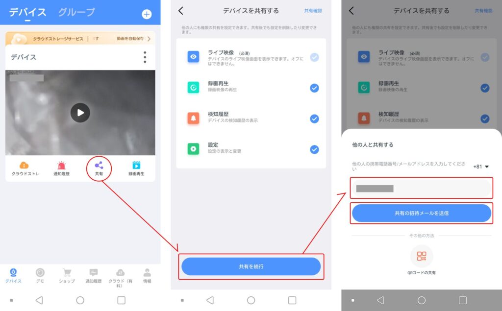 ④共有したい相手のメールアドレスまたは電話番号を入力します