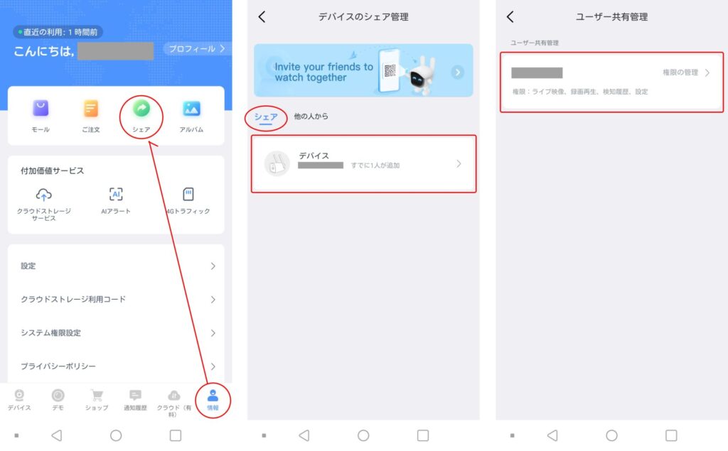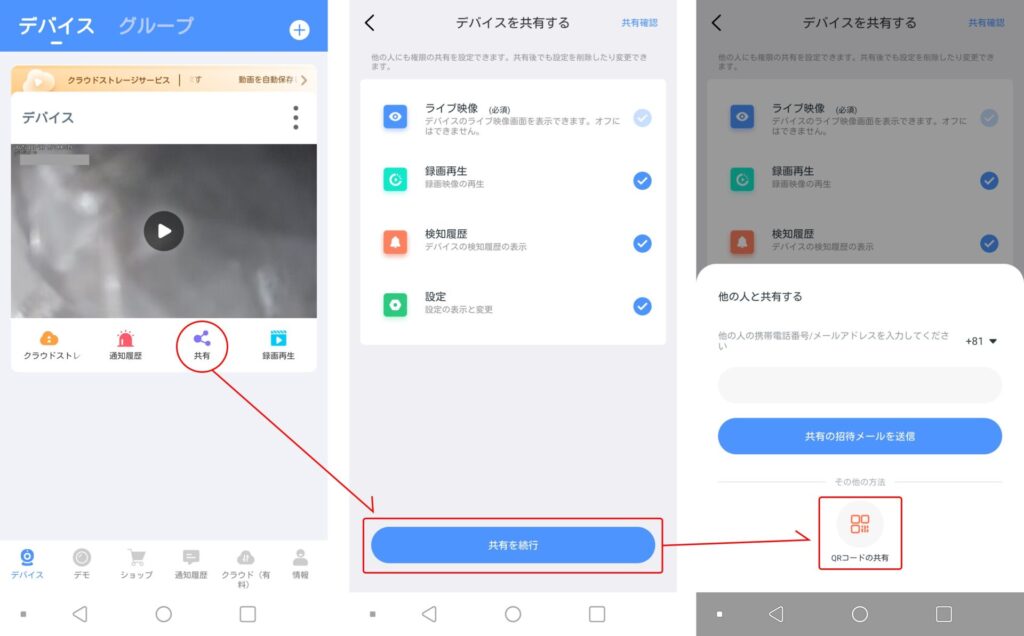 デバイス情報を共有する場合の操作方法は下記のとおりです。