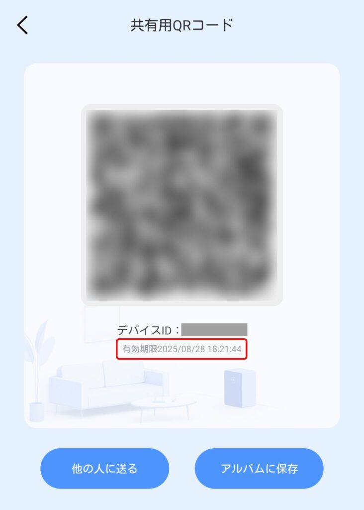 ⑤共有用QRコードが表示されたら共有される側のアプリで読み込みます