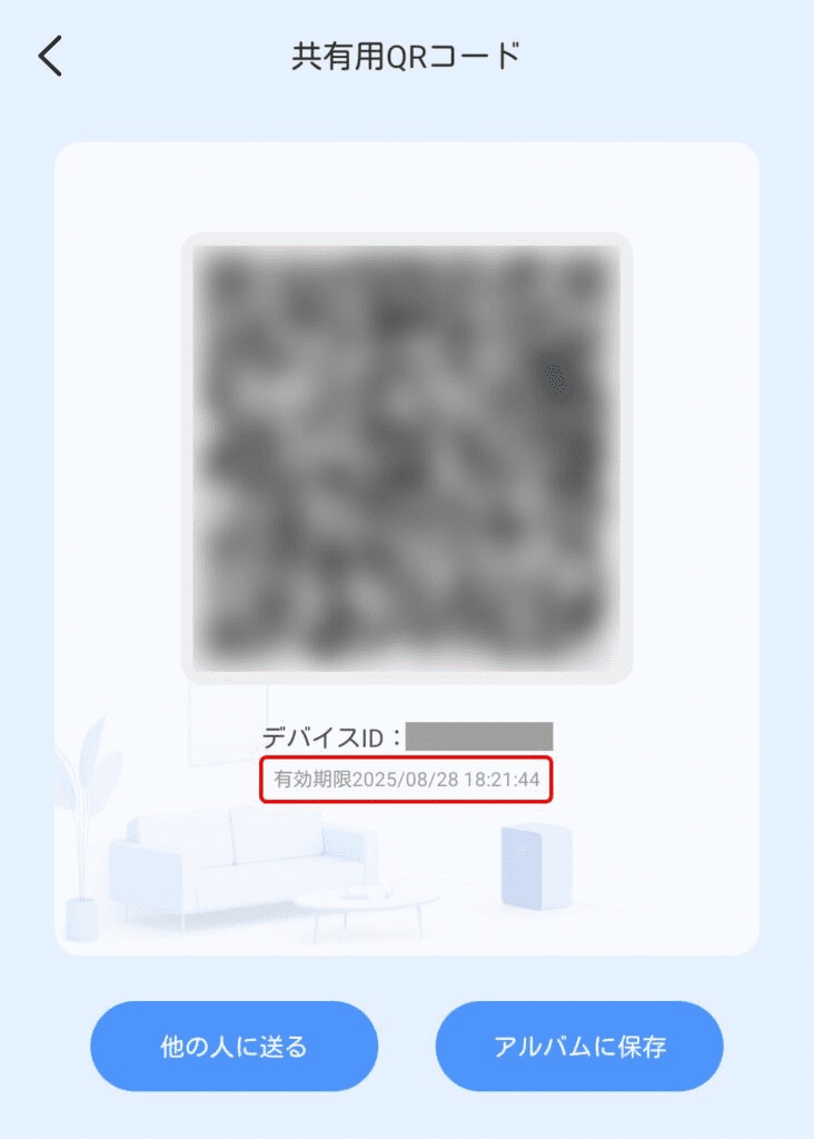 共有用QRコードが表示されたら共有される側のアプリで読み込みます