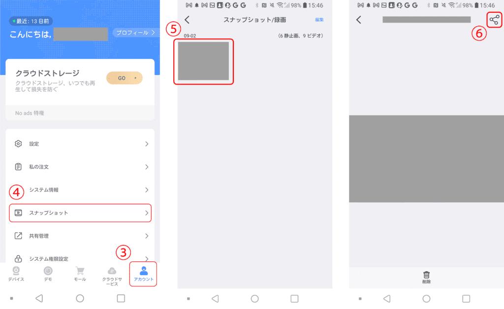 ⑥画面右上の共有アイコンをタップして端末へ保存します