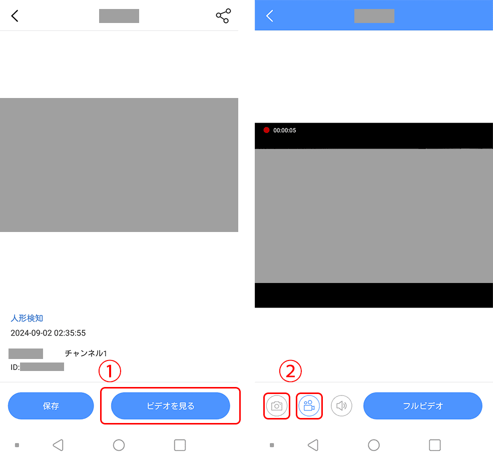 アラーム内の動画を端末に保存する場合は下記の手順で操作を行ってください。