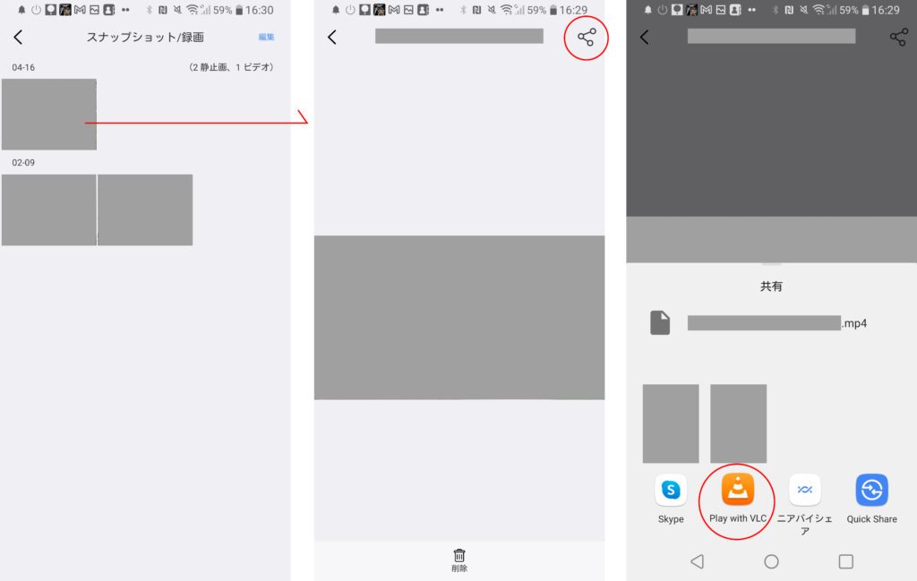 スマートフォンのディスプレイの仕様が、解像度2304*1296の動画再生に対応していない場合はHD画質で手動録画したリアルタイム映像やMicroSDカード内のデータをアプリ内スナップショットから再生することができません。