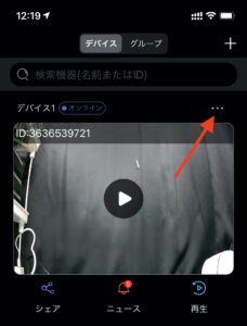 カメラ一覧の右上の3つの点をタップします。