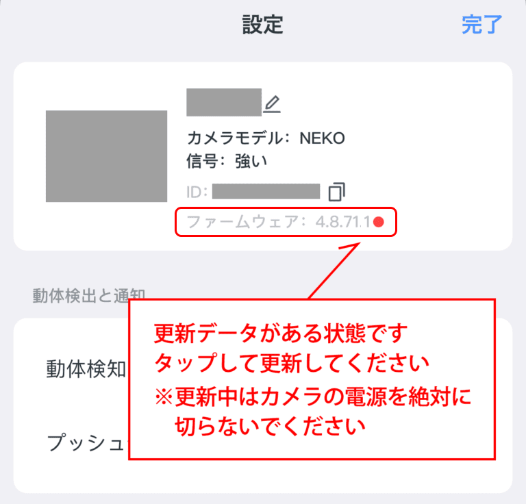 ※カメラがオフライン状態になっている場合はFWの更新をすることができません。
