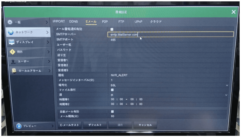⑤設定変更後録画機本体のメール設定からテストを押し成功と出れば完了です。