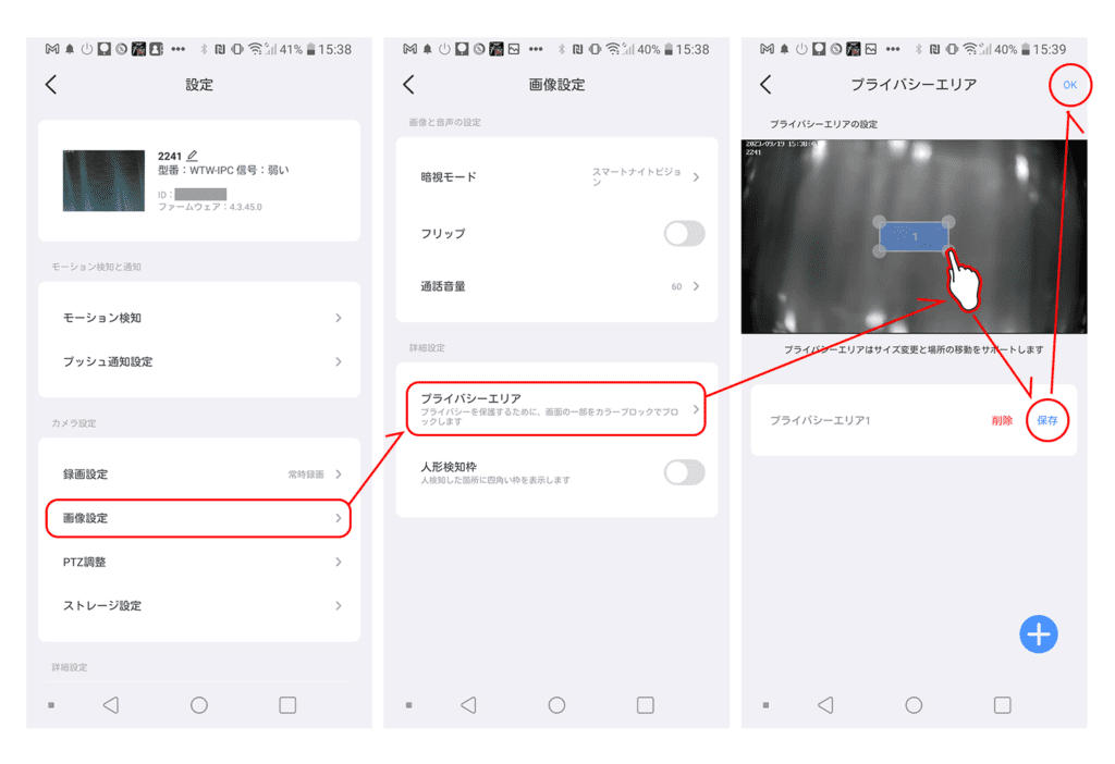 プライバシーエリアを設定する方法は下記をご確認ください。