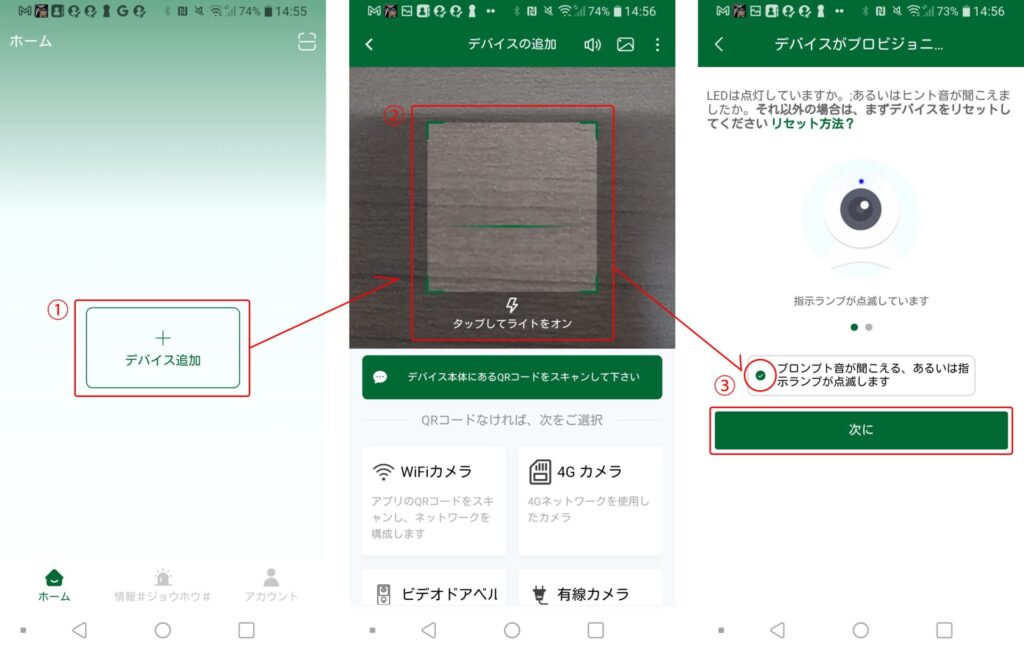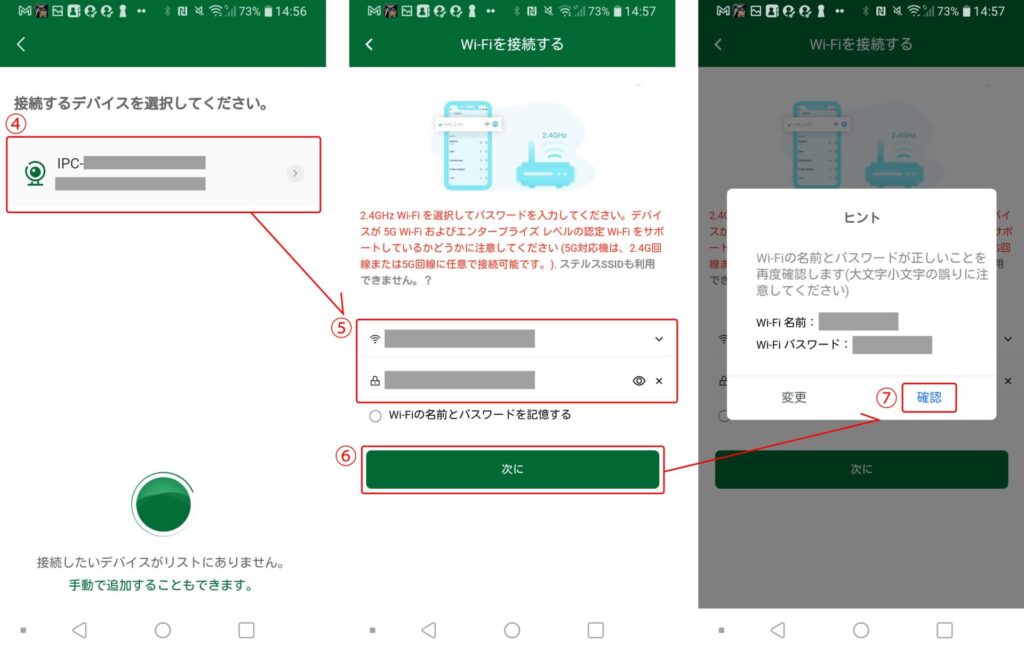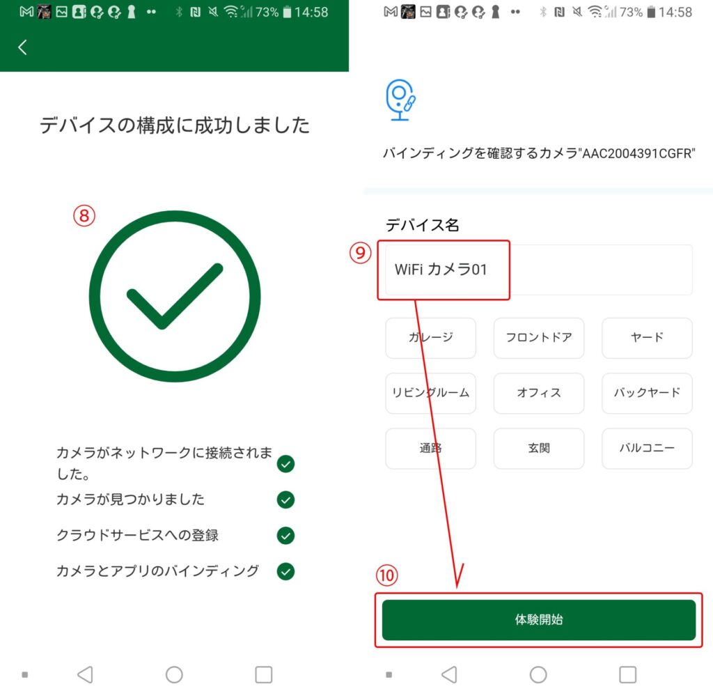 ⑧カメラとWi-Fiルーターの接続が完了すると自動で画面が移行します