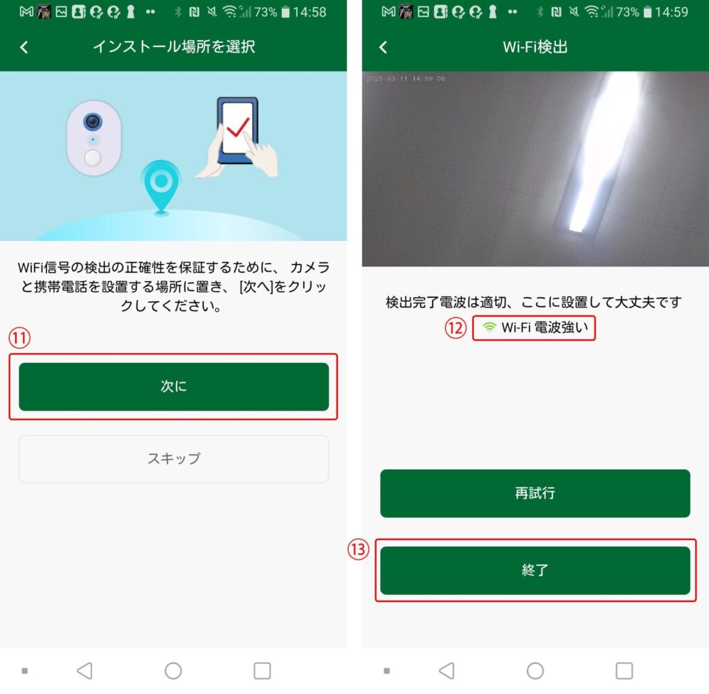 ⑪カメラの設置場所にWi-Fiの電波が十分に届いているか確認します