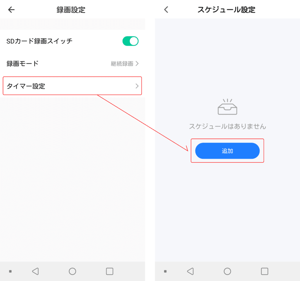 録画設定内の「タイマー設定」をタップすることでスケジュールを追加できます。
