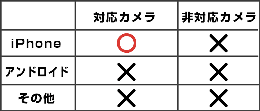 こちらの接続方法は、対応カメラでのみ接続が可能となります。全てのカメラが対応しているわけではございません。また、対応カメラとiPhoneが必要となります。
