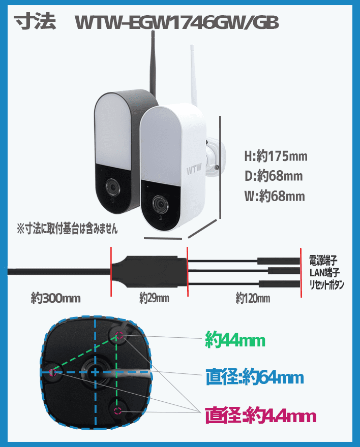 【寸法】玄関灯カメラ WTW-EGW1746GW/GB