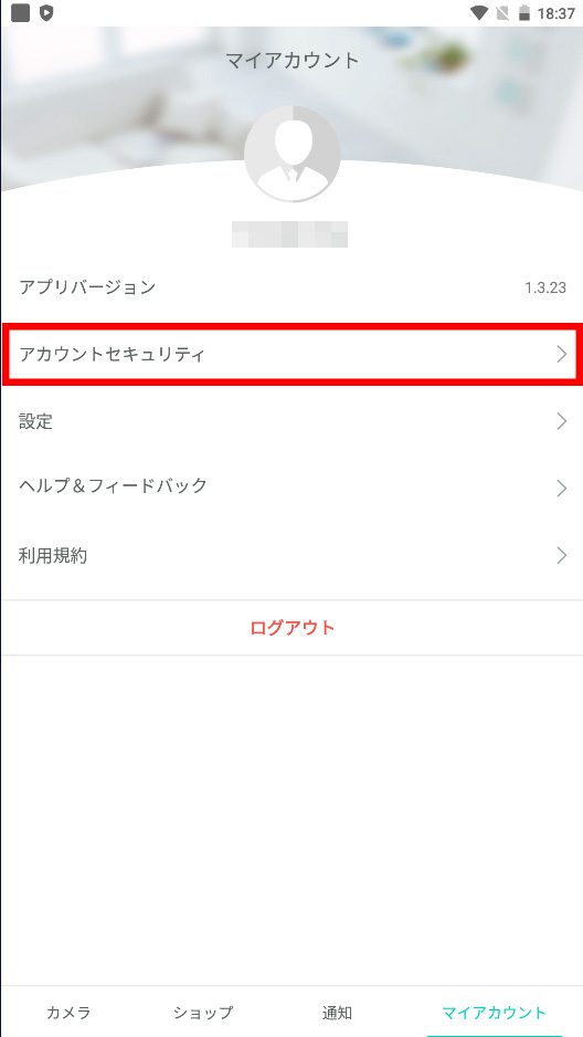 アプリ下部のメニューから「マイアカウント」(iOS版は「アカウント」)をタップし、「アカウントセキュリティ」をタップします。