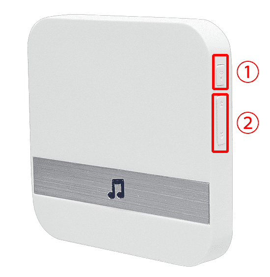 ①ボタンを押すことでチャイムから鳴る音量を調整することができます。無音状態を含めて5段階から調整ができます。