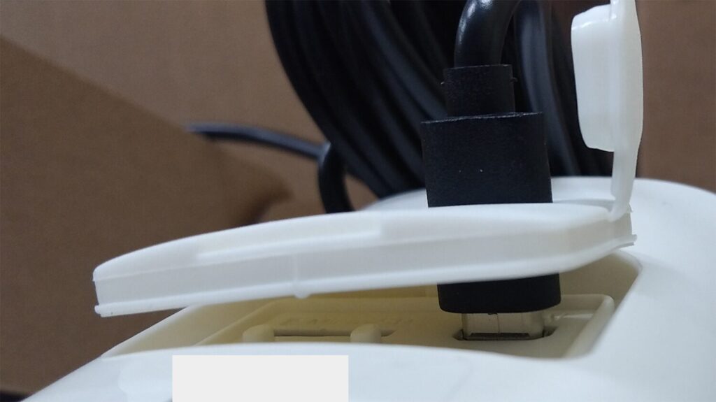 ②の穴にソーラーパネルから出ているケーブルの先端を差し込みます。