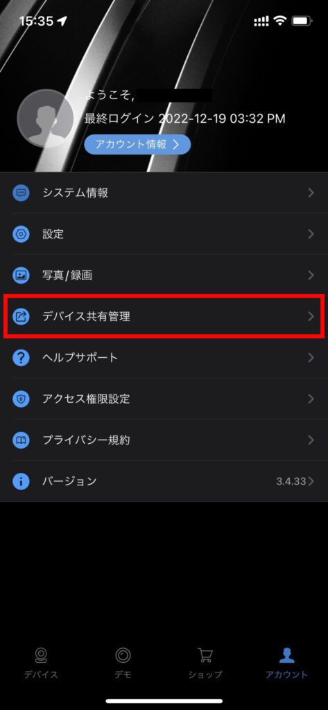 6. カメラのシェア(共有)を外す方法|WTW EAGLEアプリ