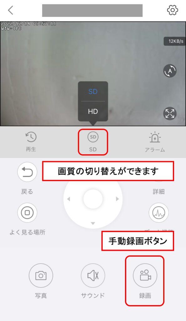 また、リアルタイム映像の場合は「SD」画質に切り替えた状態で録画をしていただくことでWTW-EAGLEアプリ内で再生ができます。