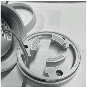 ①下のラインに沿って回すことで外れます。