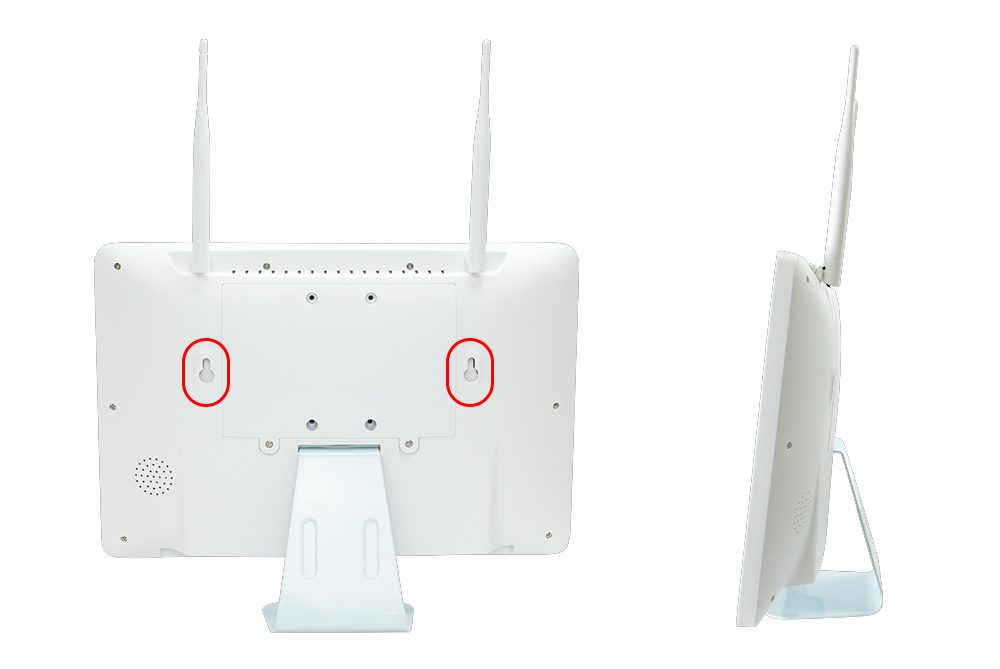 モニターの裏面にネジで設置できるひっかけ穴が2点ございます。