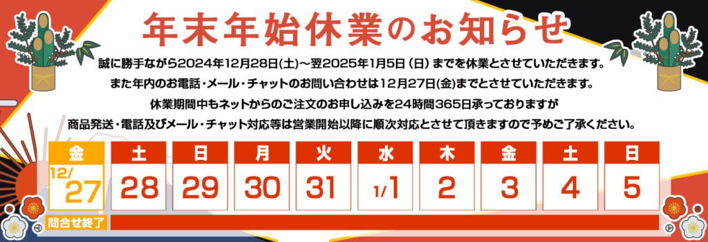 2024年12月27日(金)出荷センターのみ営業