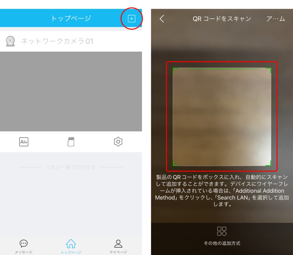 ■カメラを共有される側の操作方法カメラを初期設定したアカウントで表示された共有用QRコードをアプリ内のカメラでスキャンしてください